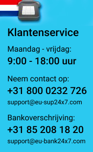 Als u vragen, opmerkingen of andere verzoeken heeft betreffende uw bestelling, schrijf ons dan. Elke e-mail wordt gelezen en zo spoedig mogelijk beantwoordt. Tijdens kantooruren is onze klantenservice beschikbaar om u te op welke manier dan ook assisteren.
